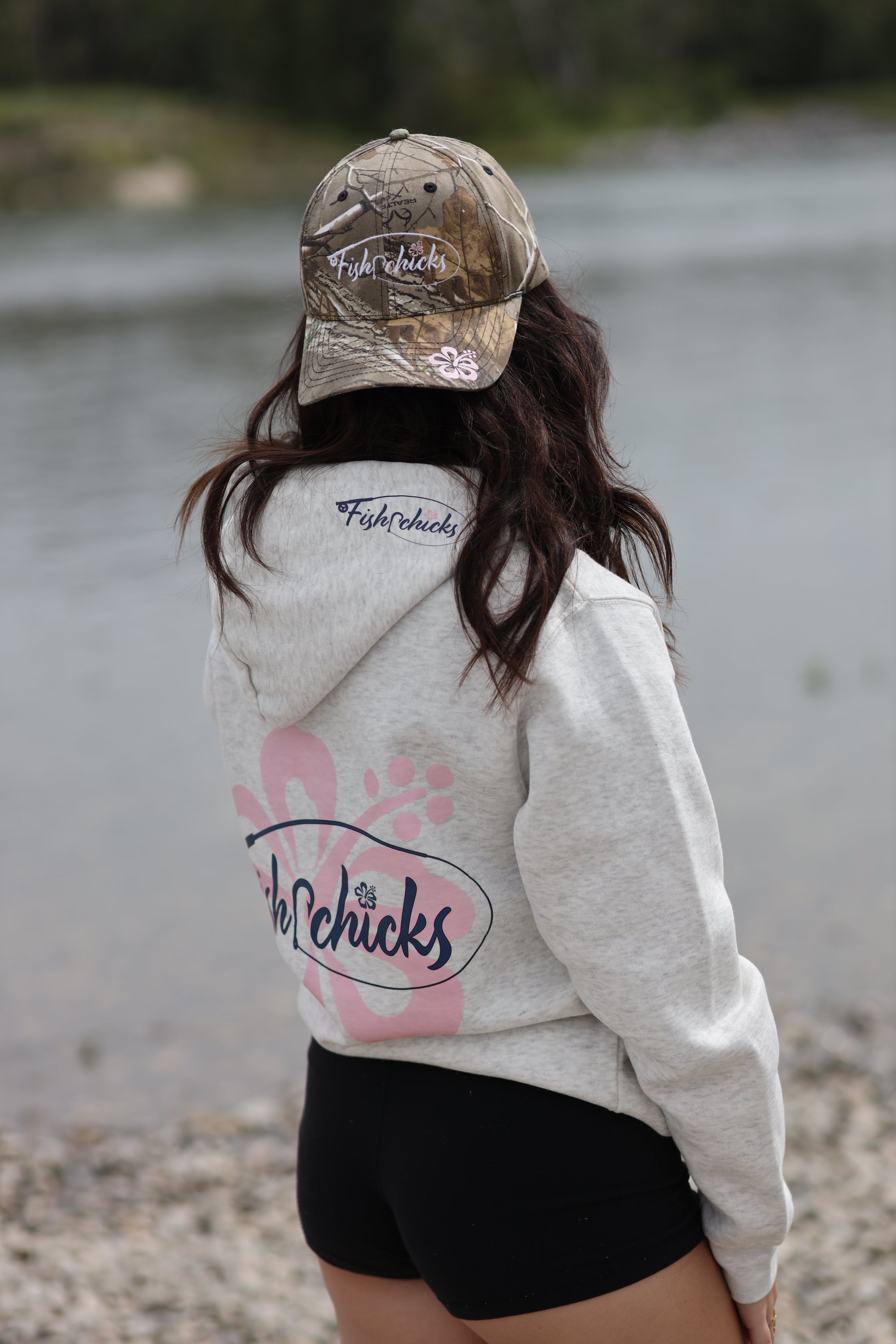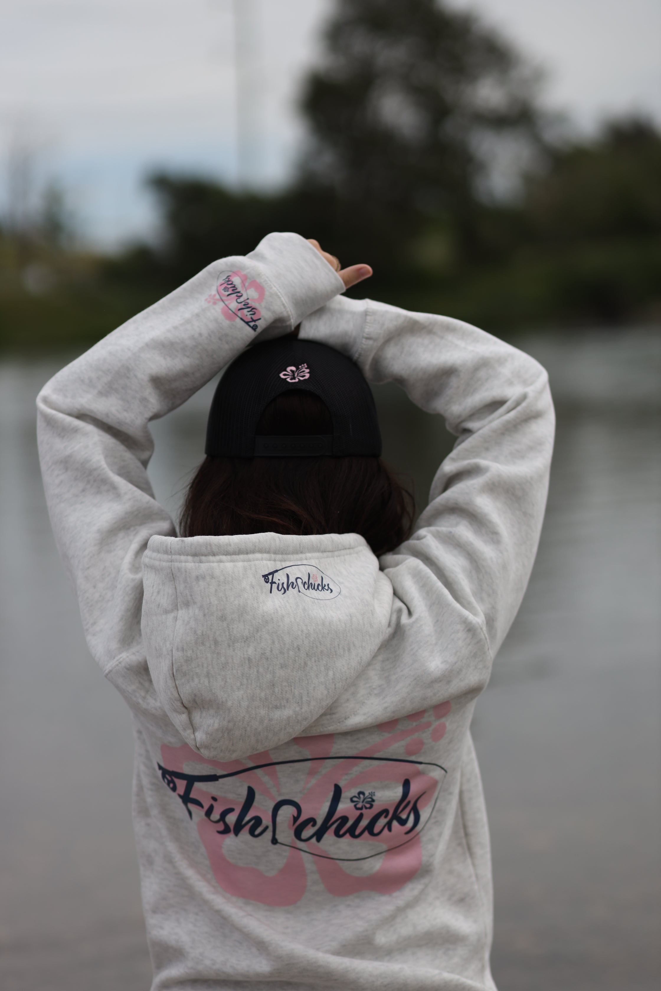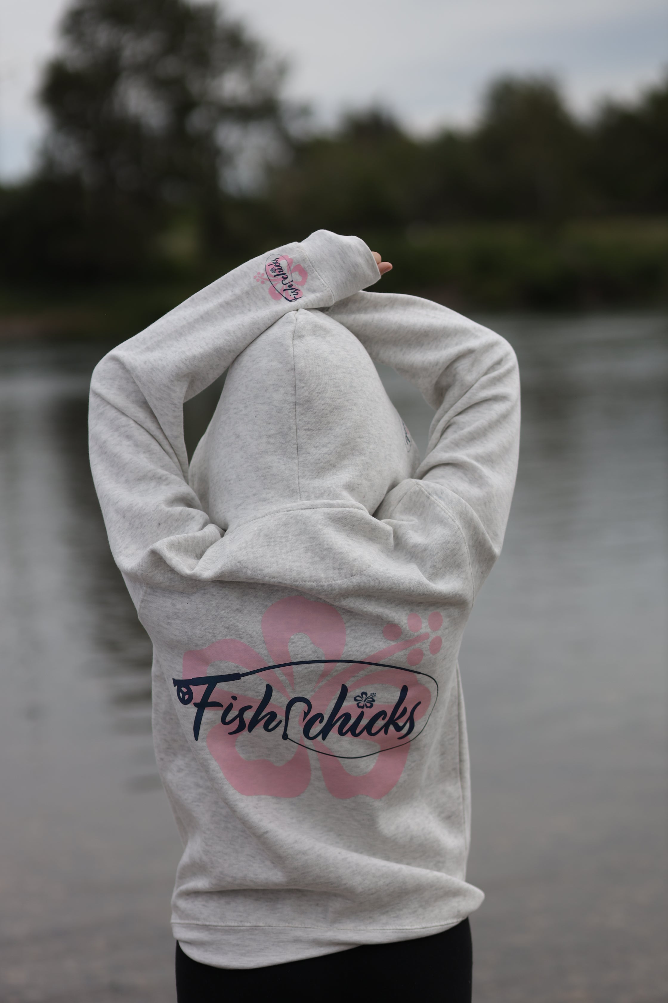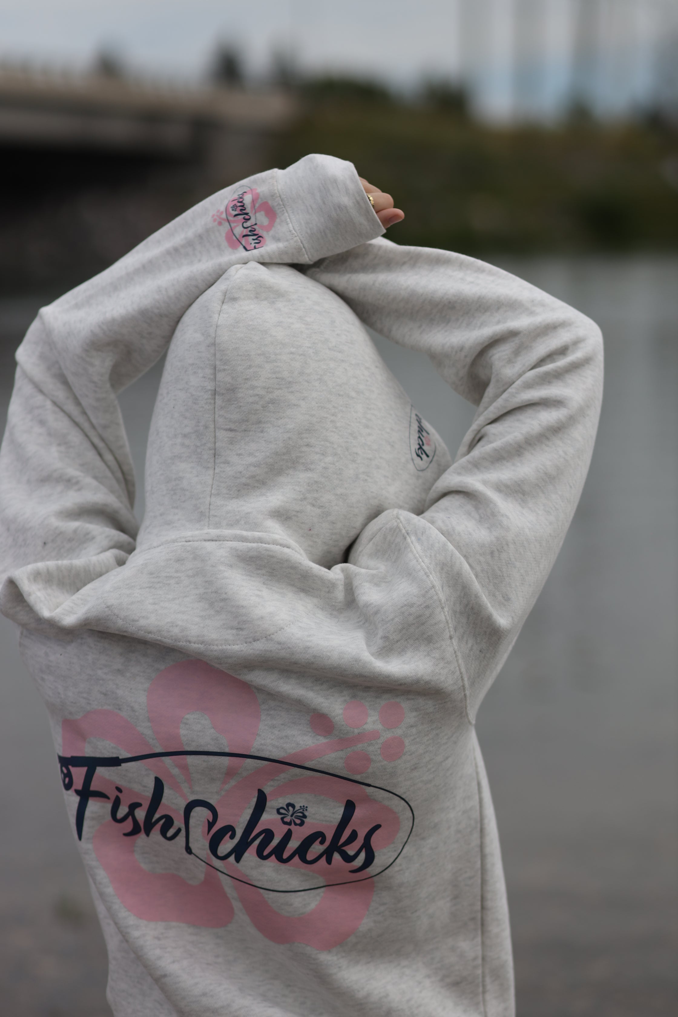 Fishr Chicks Heather Grey Logo Hoodie - Cozy & Stylish