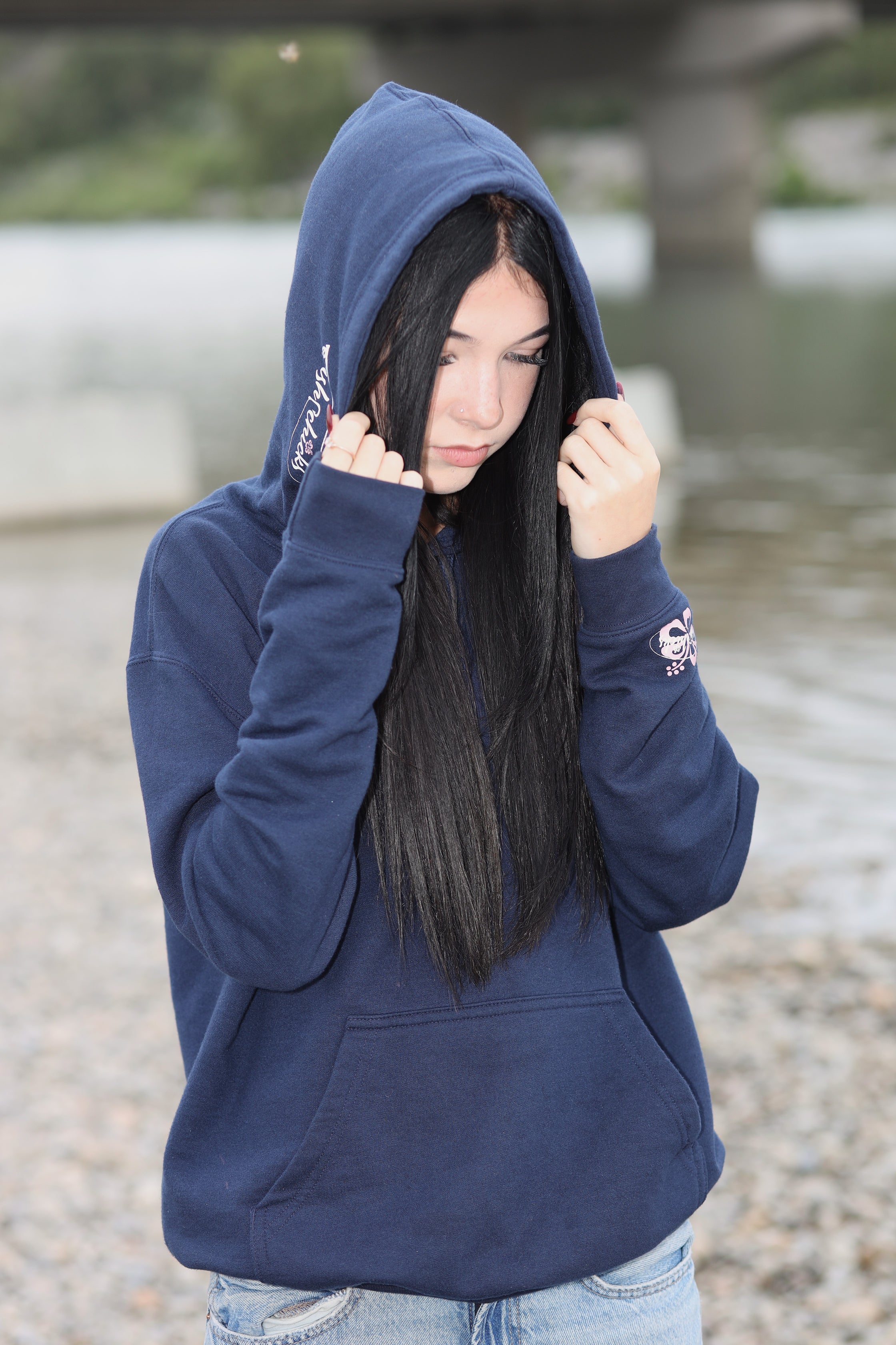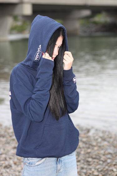 Step up your hoodie game with the navy hibiscus hoodie. Make it your go-to for comfort, warmth, and everyday adventure.